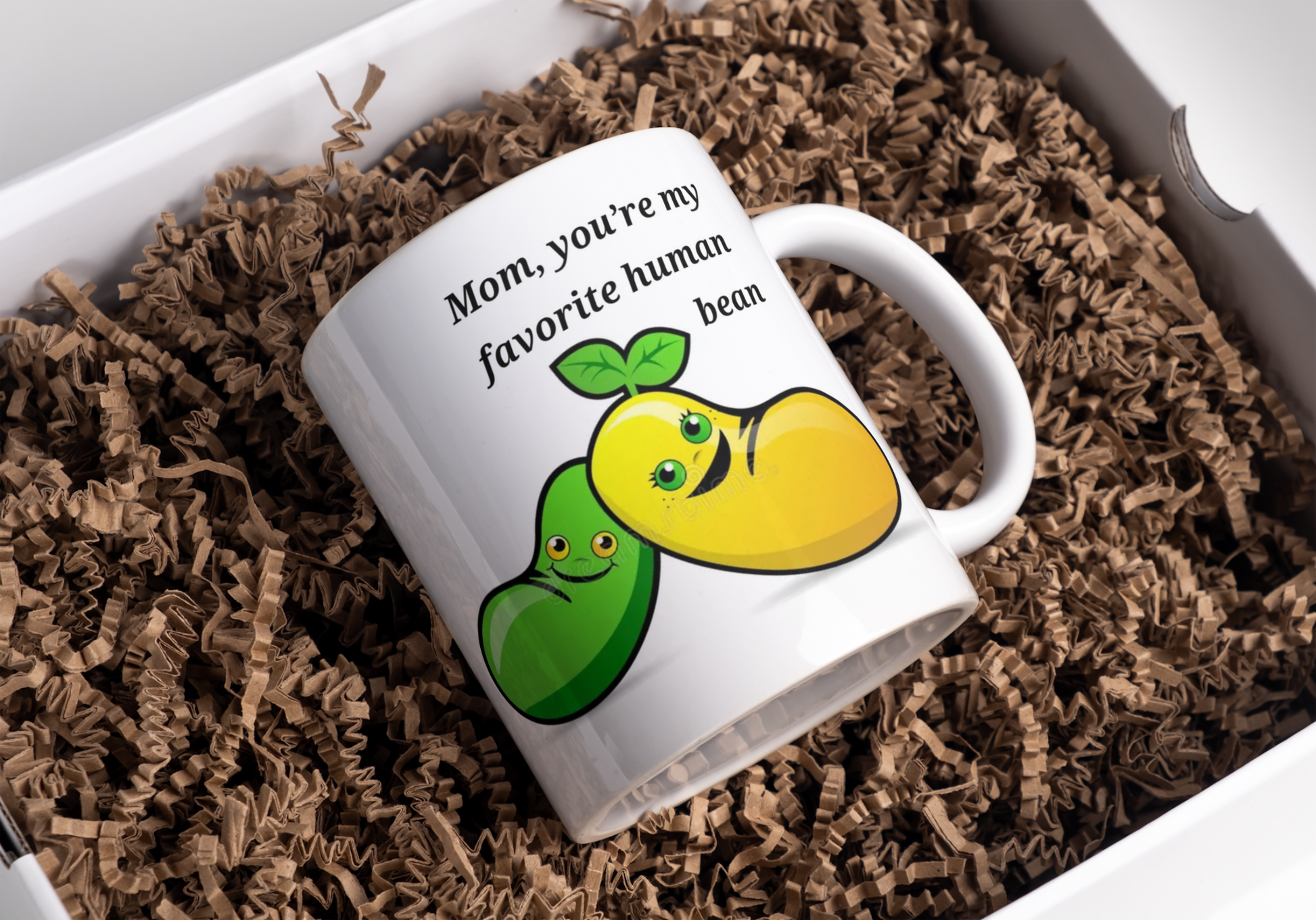 Brew up some laughs with this cheeky mug featuring two adorable beans and the heartfelt message "Mom you are my favourite human bean." Perfect for coffee lovers with a sense of humour, it's an ideal gift to show mum how much she means to you—with a punny twist. Durable ceramic construction keeps your favourite hot beverages at the perfect temperature while bringing a smile to your face every morning.