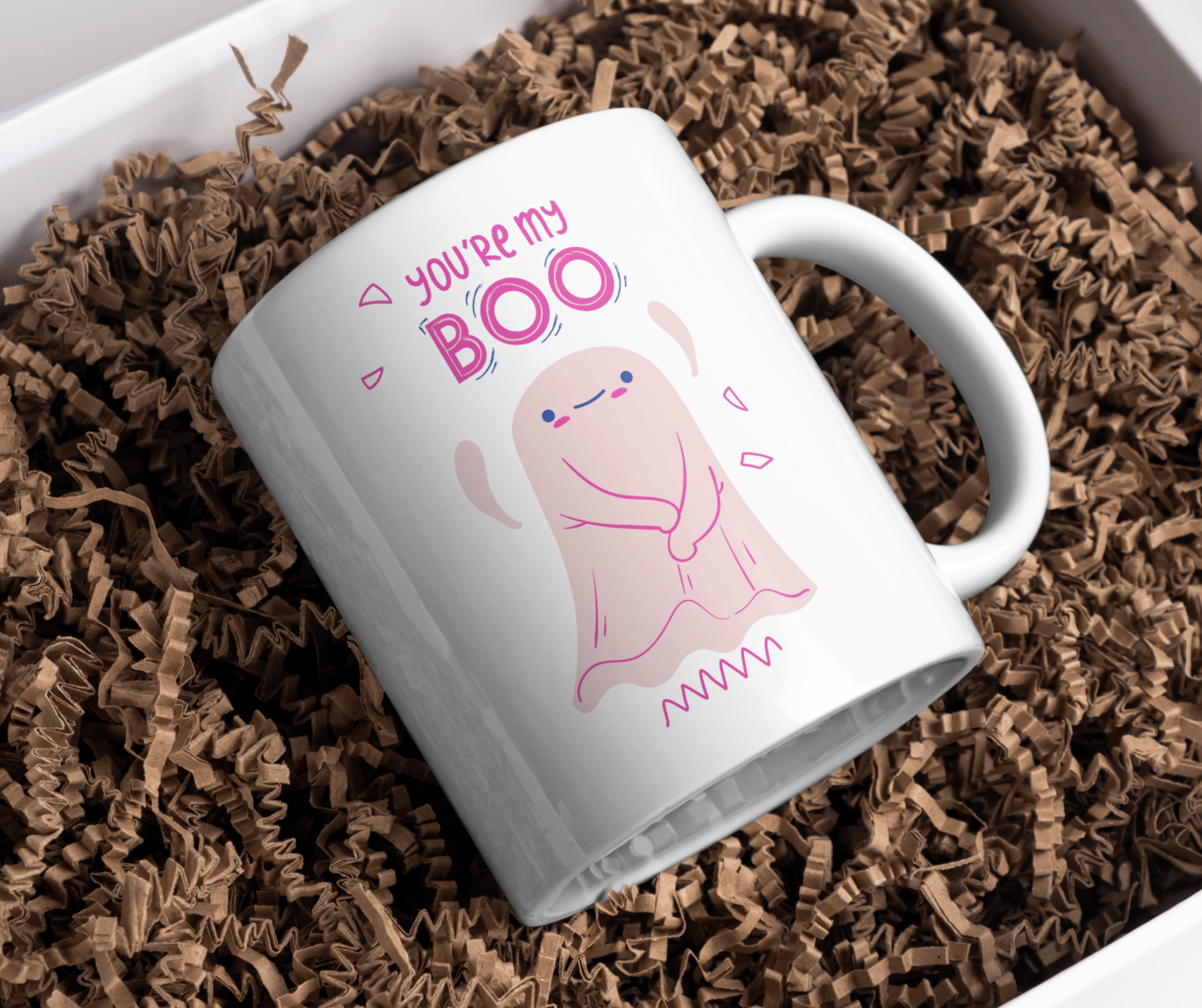 Spooky romance meets morning coffee with this cheeky mug featuring a friendly ghost declaring "You are my boo!" Perfect for Halloween lovers, couples with a sense of humour, or anyone who appreciates a good pun. This ceramic mug holds your favourite hot beverage while delivering a playful reminder that you're someone's favourite person—ghost approved. Ideal for gifting or keeping for yourself.