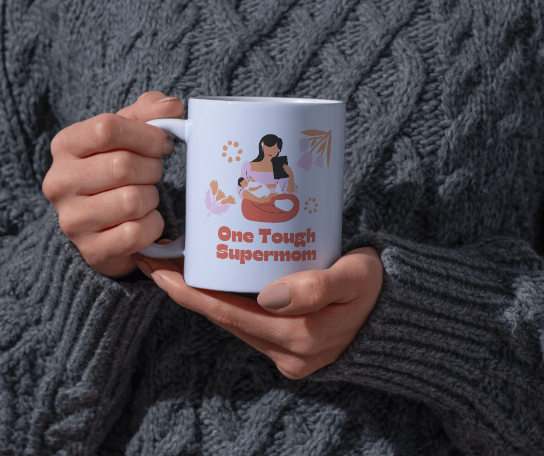 Celebrate the incredible strength of motherhood with this charming mug featuring a heartwarming image of a mum cradling her baby, emblazoned with the empowering message "One Tough Super Mom." Perfect for that special woman in your life who juggles it all with grace and humour. Whether she's managing chaos, dispensing wisdom, or simply surviving on coffee, this playful design acknowledges her superpowers. An ideal gift for Mother's Day, birthdays, or just because—a daily reminder that she's got this.